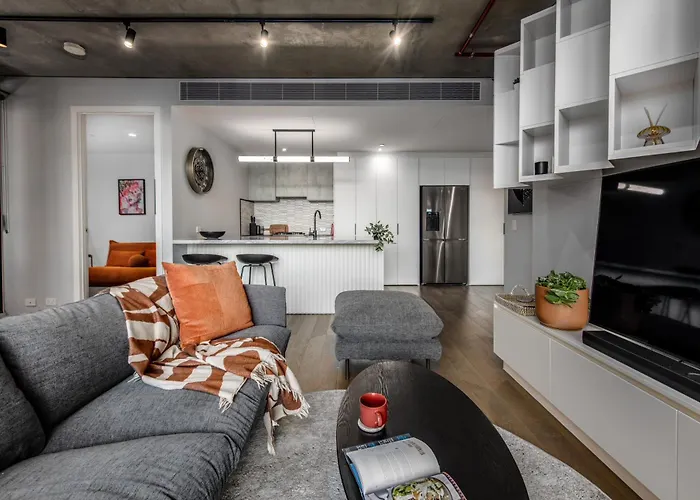 Tijdens een verblijf in Luxury City Edge Living - Pool, Hot Tub & Free Parking Melbourne appartementen van 95 m² kunnen gasten zich ontspannen op een terras op sechts 25 minuten wandelafstand van de Crown Towers Melbourne. Er is wifi voor zowel zakenreizigers als vakantiegangers.